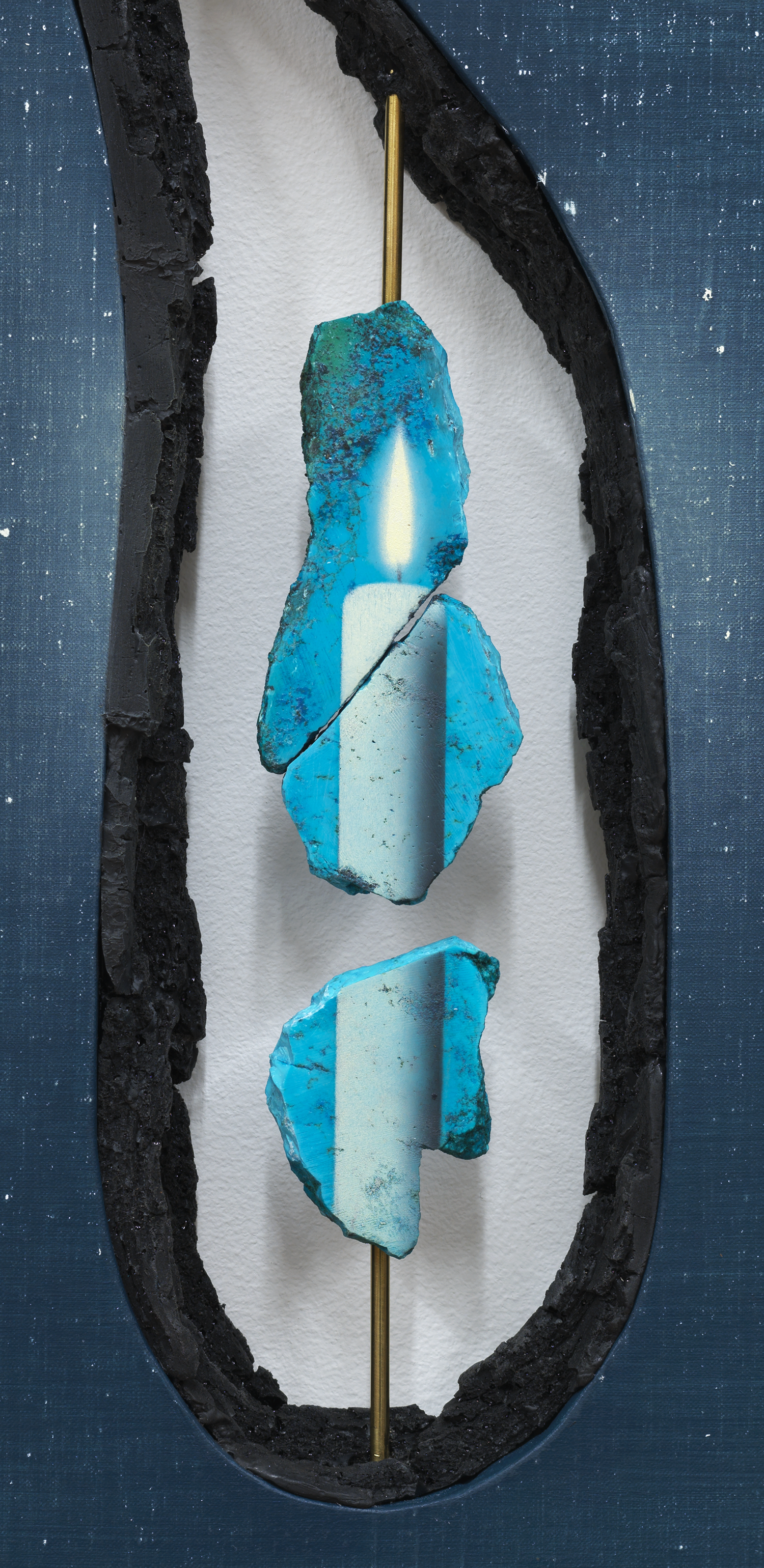 Carved foam, acrylic, resin, candle holder, candle, 42 x 24 x 10 in